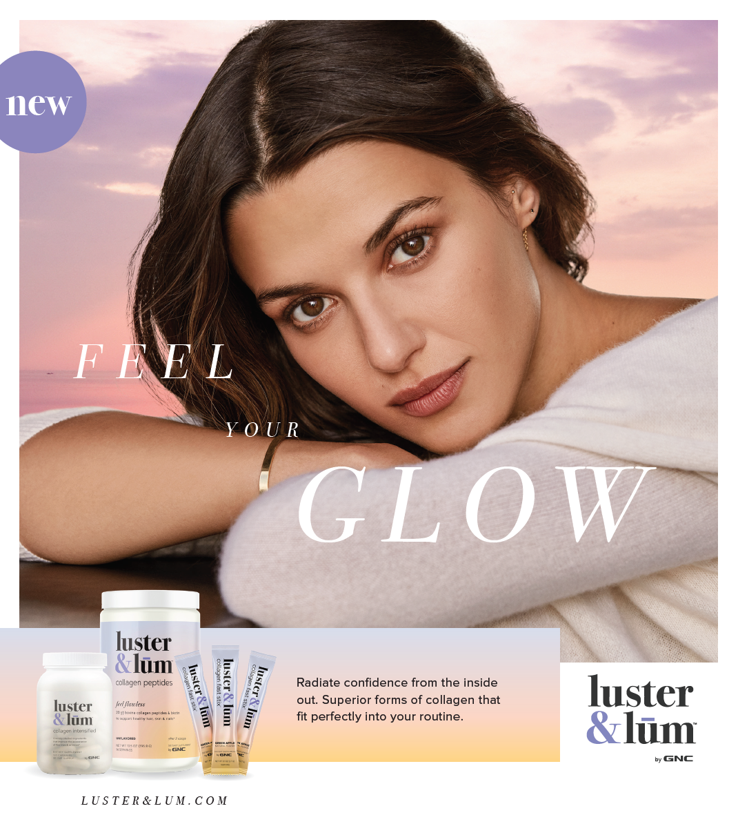 The ingestible beauty industry has been booming, with a cultural focus towards natural products, skincare from the inside out and a holistic sense of wellbeing. Luster & Lum, a new GNC sub brand, launched in 2019 and combined renowned scientific expertise with with fresh new branding that elevated this category to beautiful heights.